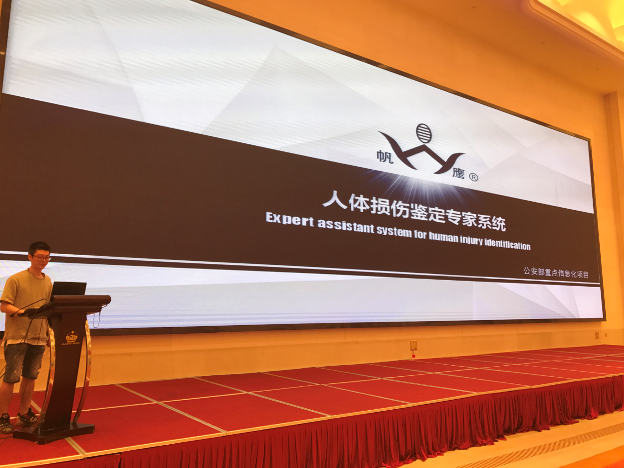我帆鷹公司作為此次活動(dòng)特邀單位,在現(xiàn)場做了兩場專題性演講:《人體損傷鑒定專家系統(tǒng)》、《公安數(shù)字化物證管理系統(tǒng)》,引起了在座400多名嘉賓的熱烈反響。